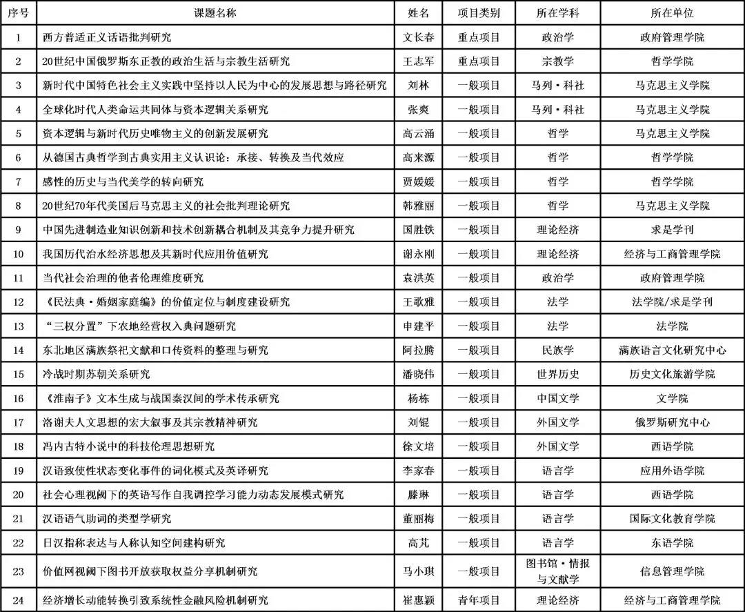 黑龍江大學2018年國家社科基金年度項目和青年項目立項名單