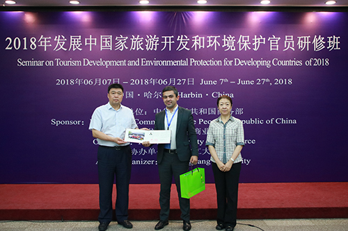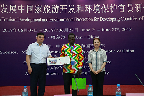 紀玫處長代表省商務廳向研修班的圓滿成功表示衷心祝賀,向研修班付出辛勤努力的教職員工表示衷心感謝。她希望大家在各自的崗位上更加進步,把在中國學習到的經驗與自己國家情況相結合,為本國旅游開發和環境保護做出應有的貢獻,成為此領域的骨干、帶頭人;希望大家做與友好合作的促進者,回國后發揮自己的影響力,推動兩國間經貿合作與文化交流,進一步加強旅游發展與環境保護領域和經濟貿易的合作以及兩國間企業的交流合作;希望大家廣泛宣傳中國政府援外人力資源開發合作事業,希望通過大家的宣傳影響有更多的朋友來中國學習交流。最后,她歡迎大家再來中國、再來哈爾濱。