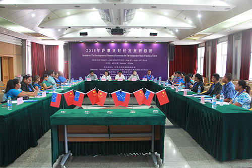 7月6日上午, 2018年薩摩亞財經發展研修班在我校外事處多功能廳舉行開班儀式。我校副校長張穎春、省商務廳對外投資和經濟合作處副處長蔡夷、全體研修班成員參加了開班式。開班式由我校國際合作與交流處副處長唐偉主持。