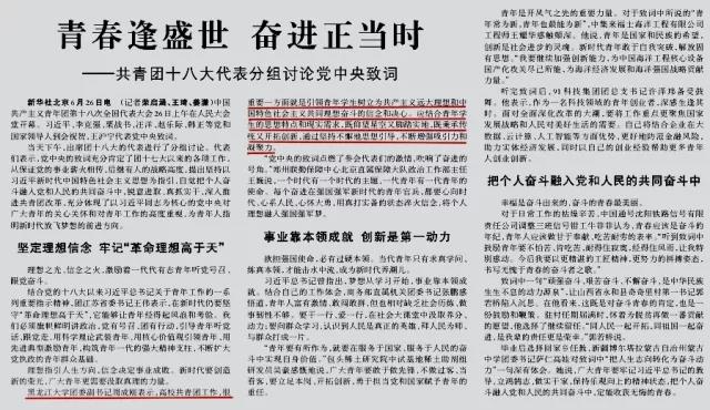 在接受中央電視臺新聞聯播采訪時,他表示:黨中央在致詞中要求我們牢記習近平總書記“革命理想高于天”的教誨,我們要用理想之光、信念之火激勵青年跟黨走,用當代中國馬克思主義,構筑青年學生的強大精神支柱。