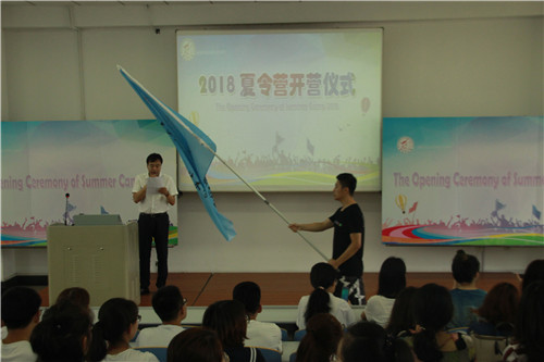 隨后,教務處吳華洋處長為參加夏令營的師生做鼓舞動員,他希望夏令營營員們珍惜機會,注意安全。開營儀式最后,嚴明副校長為各營營長授旗,并合影留念。