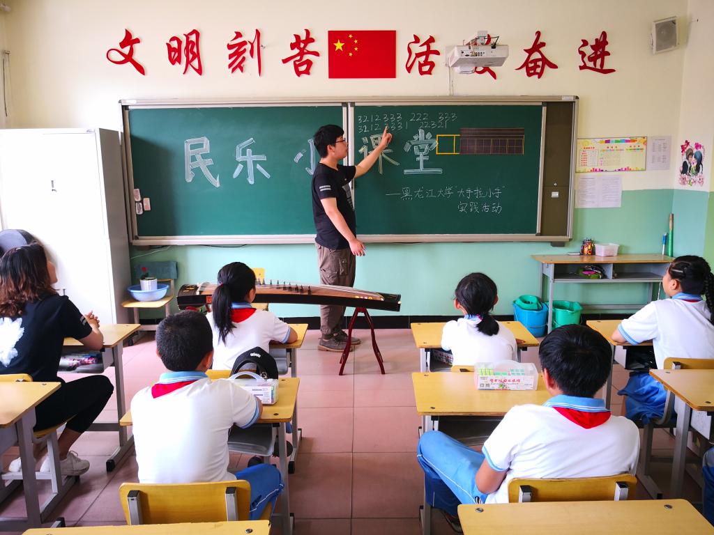 捐贈儀式后,為豐富孩子們的課外活動,陶冶情操,提升他們的藝術鑒賞力,黑龍江大學的大學生志愿者和來自黑龍江高校廣播的主持人為孩子們帶來精彩的七彩藝術課堂,民族舞蹈、民族樂器、西洋樂器、聲樂表演、禮儀展示、朗誦和體育等體驗課程讓孩子們在輕松愉快的氛圍里體驗藝術的魅力,感受文化藝術的熏陶。