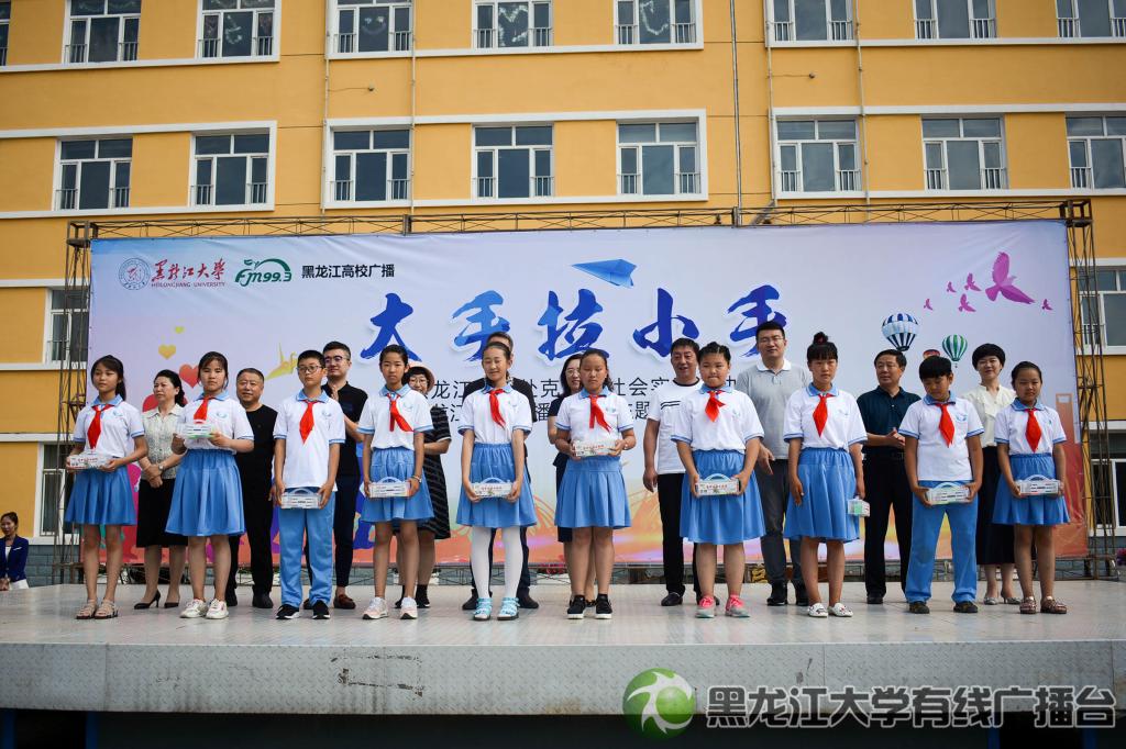 此次活動為了深入學習貫徹習近平新時代中國特色社會主義思想和黨的十九大精神,助力我省全面建成小康社會和脫貧攻堅工作,充分發揮大學生傳遞正能量和新聞媒體宣傳報道作用,黑龍江大學聯合黑龍江高校廣播來到齊齊哈爾市克東縣第三小學,共同開展“大手拉小手”關愛行動。