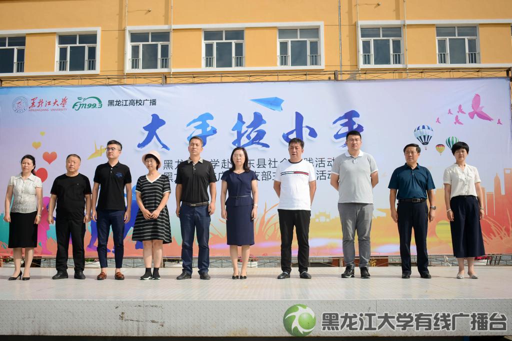 2018年7月16日上午,黑龍江大學大學生與農村留守兒童“大手拉小手”關愛活動在克東縣第三小學舉行。校黨委副書記丁宏,克東縣人民政府副縣長孫志民,黑龍江高校廣播總監張東新,校黨委學工部部長、學生處處長李石,校團委副書記周成剛、張丹,克東縣教育局局長史學謙、副局長孫文良、克東縣第三小學校長韓秀妍等領導和我校的60余名志愿者及第三小學的孩子們共同參加了此次活動。