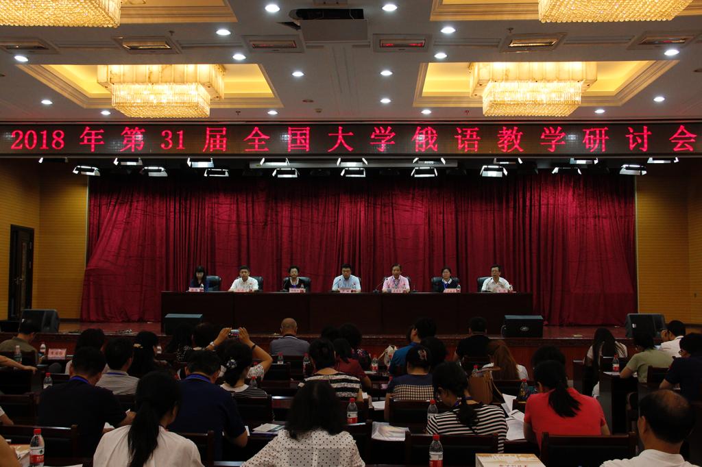 7月17日上午,第31屆全國(guó)大學(xué)俄語(yǔ)教學(xué)研討會(huì)在我校主樓一樓報(bào)告廳召開。我校副校長(zhǎng)嚴(yán)明,全國(guó)高等學(xué)校大學(xué)外語(yǔ)教學(xué)研究會(huì)俄語(yǔ)分會(huì)會(huì)長(zhǎng)、全國(guó)大學(xué)俄語(yǔ)四六級(jí)考試設(shè)計(jì)組命題專家、北京航空航天大學(xué)馬步寧,教育部高等學(xué)校大學(xué)外語(yǔ)教學(xué)指導(dǎo)委員會(huì)副主任委員、俄語(yǔ)組組長(zhǎng)、全國(guó)大學(xué)俄語(yǔ)四六級(jí)考試設(shè)計(jì)組副組長(zhǎng)、清華大學(xué)何紅梅,教育部高等學(xué)校大學(xué)外語(yǔ)教學(xué)指導(dǎo)委員會(huì)委員全國(guó)高等學(xué)校大學(xué)外語(yǔ)教學(xué)研究會(huì)俄語(yǔ)分會(huì)秘書長(zhǎng)、北京航空航天大學(xué)教授武曉霞,教育部高等教育出版社高級(jí)編輯孫悅,我校教務(wù)處、俄語(yǔ)學(xué)院等相關(guān)單位負(fù)責(zé)人及全國(guó)各高校、中學(xué)的俄語(yǔ)教師代表出席本次研討會(huì)。本次研討會(huì)由我校俄語(yǔ)學(xué)院院長(zhǎng)孫超主持。