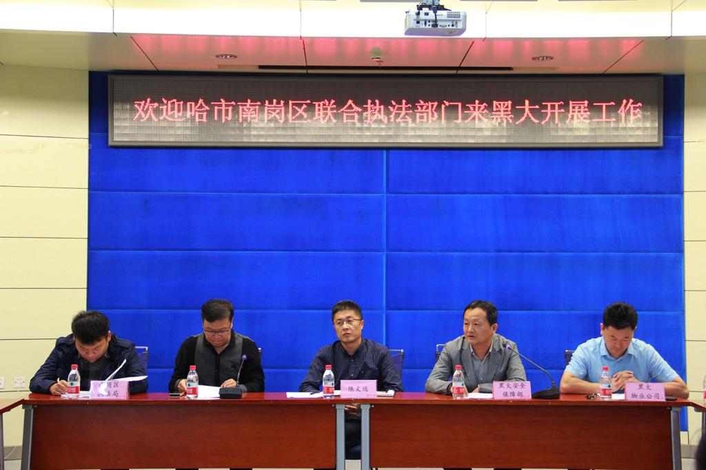新學期伊始,為進一步加強校園周邊及家屬區環境治理,營造和諧、安全、育人的校園環境,9月3日上午,哈爾濱市南崗區城市管理行政執法局局長孔繁志一行來到我校,在主樓A226室召開會議。我校副校長陳文遠,學校辦公室、安全保障部、物業公司、校區管理處、后勤管理處、宣傳部、國有資產管理處等相關部門負責人參加會議。