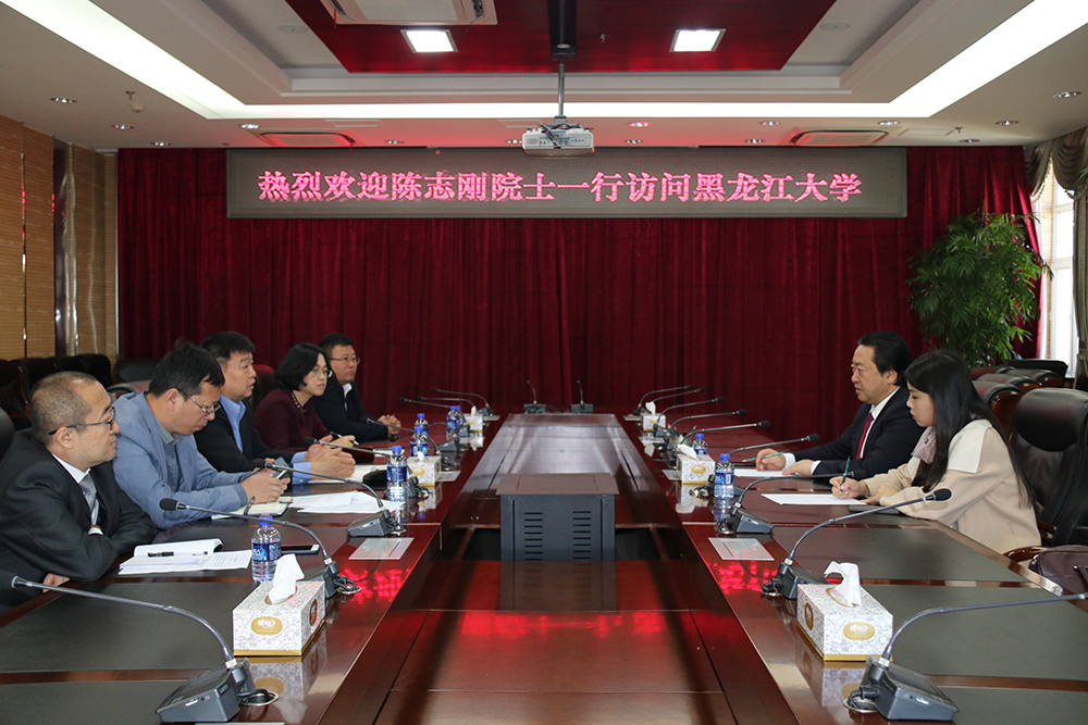 嚴(yán)明副校長代表學(xué)校對(duì)陳志剛院士一行的到來表示熱烈歡迎。他介紹了我校的歷史沿革、學(xué)科概況、辦學(xué)特色等基本情況,指出在“雙一流”學(xué)科建設(shè)背景下,學(xué)校整合校內(nèi)俄語資源,成立了俄語學(xué)部,在俄語學(xué)部的統(tǒng)一領(lǐng)導(dǎo)下,進(jìn)一步優(yōu)化我校俄語教學(xué)模式,實(shí)現(xiàn)校內(nèi)俄語資源的共享與信息交流,利于我校俄語師資力量的整合與教學(xué)水平的提高,更加鮮明地體現(xiàn)出我校在國內(nèi)獨(dú)樹一幟的對(duì)俄辦學(xué)特色,為我校“雙一流”建設(shè)的發(fā)展提供更多的契機(jī)與平臺(tái)。嚴(yán)明副校長表示,為了提高學(xué)校的國際影響力,充分利用我校對(duì)俄合作優(yōu)勢(shì)和圣彼得堡俄中商務(wù)園的資源優(yōu)勢(shì),希望雙方能夠在更多領(lǐng)域進(jìn)行深度合作,創(chuàng)建黑龍江大學(xué)對(duì)俄合作新品牌。