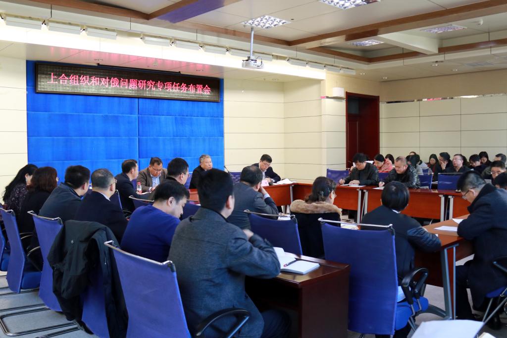 11月5日上午,我校在主樓A226會(huì)議室召開(kāi)了上合組織和對(duì)俄問(wèn)題研究專(zhuān)項(xiàng)任務(wù)布置會(huì)。我校黨委副書(shū)記、校長(zhǎng)付宏剛,副校長(zhǎng)嚴(yán)明、董玉庭,各文科學(xué)院主管科研的相關(guān)負(fù)責(zé)人、外語(yǔ)學(xué)院領(lǐng)導(dǎo)班子全體、俄羅斯研究中心全體人員、其他學(xué)院涉俄研究人員及對(duì)俄問(wèn)題研究專(zhuān)項(xiàng)負(fù)責(zé)人出席會(huì)議。本次會(huì)議由社會(huì)科學(xué)處處長(zhǎng)李洪波主持。