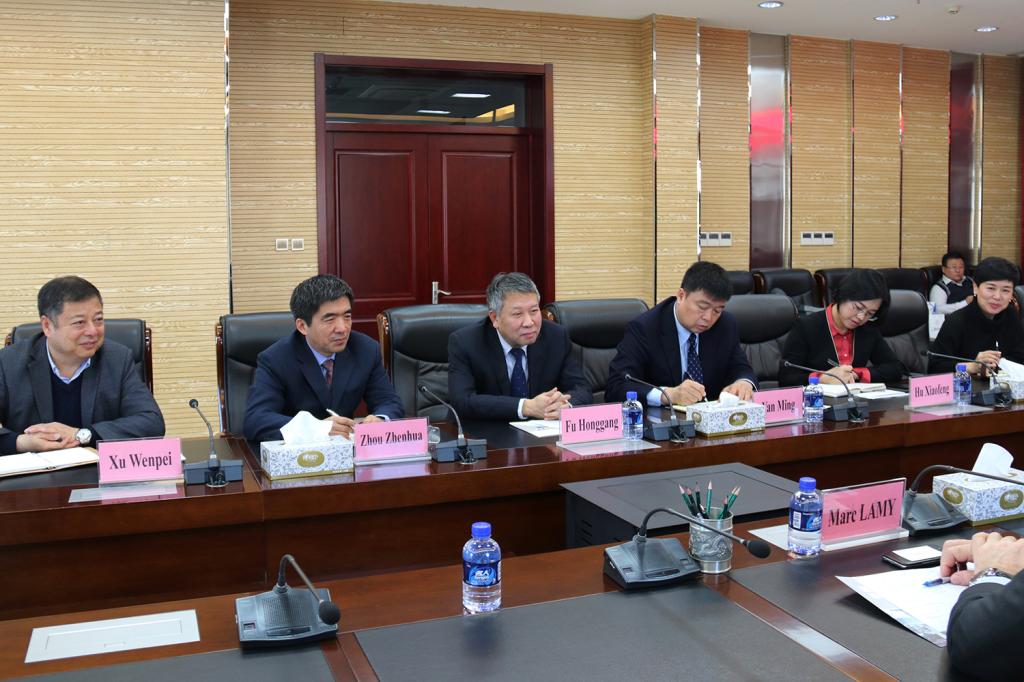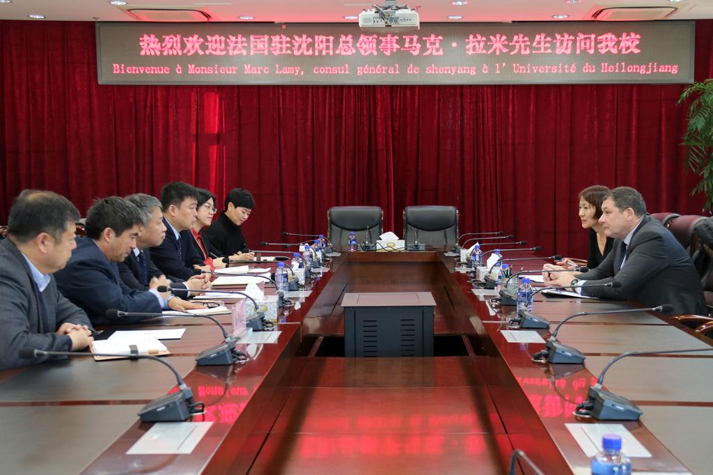 付宏剛校長對馬克·拉米總領事的到訪表示歡迎,并對法國駐沈陽總領事館對我校法語專業以及中法學院的建設給予的大力支持表示感謝。他表示,在“一帶一路”背景下,學校與包括法國在內多個國家的合作將會繼續深入。培養既懂專業又精通法語的復合型人才有利于加強兩國的合作交流,學校將不斷努力,積極探索雙方合作的深度和廣度,希望在法方的配合與支持下,雙方能更好地開展合作,互惠共贏。