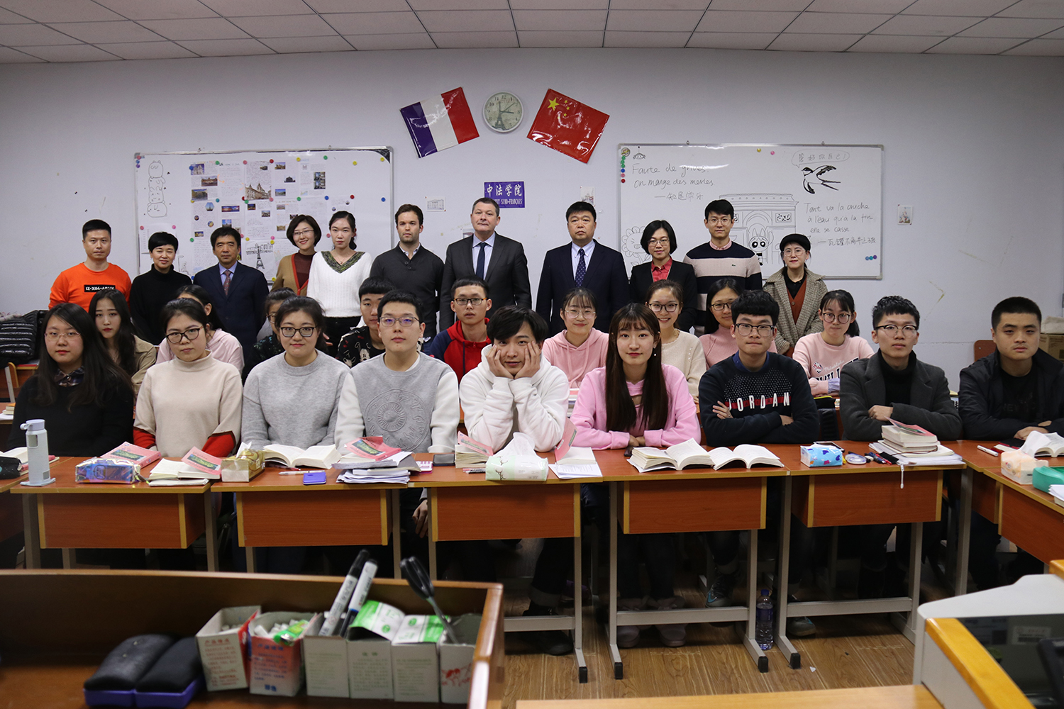 會后,馬克·拉米總領事在嚴明副校長等的陪同下參觀了中法學院,并走進16級和17級學生課堂,與學生和教師進行互動交流。