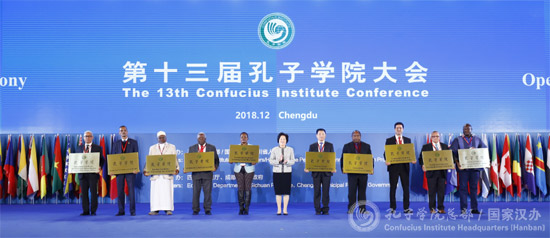 12月4日,第十三屆全球孔子學(xué)院大會(huì)在成都舉行。國(guó)務(wù)院副總理、孔子學(xué)院總部理事會(huì)主席孫春蘭為開(kāi)幕式致辭,并為首次設(shè)立孔子學(xué)院的9個(gè)國(guó)家10所大學(xué)授牌,JoséFeliz Marrero副校長(zhǎng)代表多米尼加圣多明各理工大學(xué)接受授牌。我校嚴(yán)明副校長(zhǎng)應(yīng)邀參加大會(huì)。