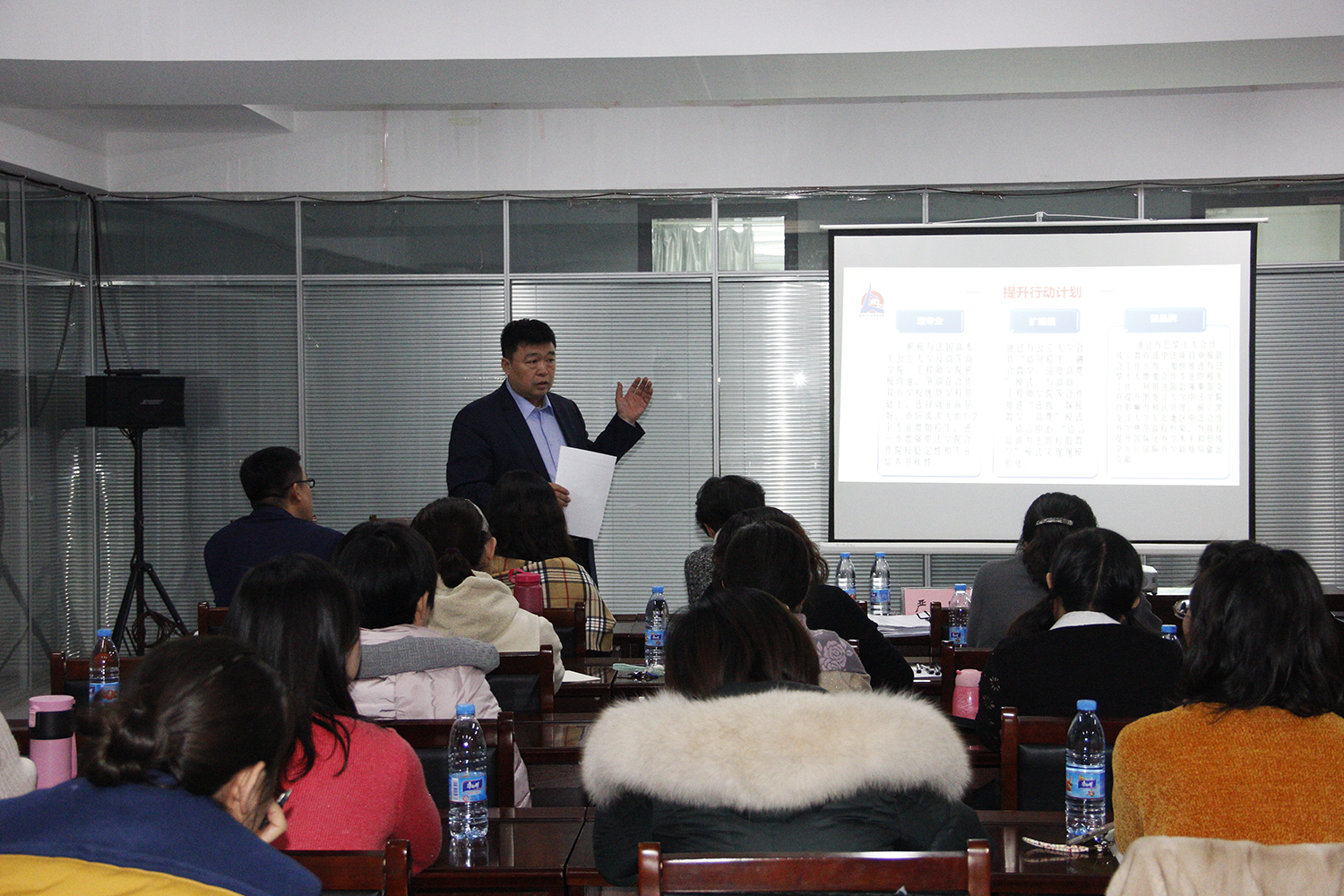 12月20日下午,我校召開了本科教育思想大討論學院匯報會。我校校長付宏剛,副校長嚴明、于文秀、董玉庭,首席督學閆鵬飛深入各組分別在主樓C3會議室、主樓C2會議室、超星智慧教室、西語學院會議室、主樓226會議室聽取匯報。各學院院長、主管教學副院長、系主任、教研室主任、教務部相關人員等參加匯報會。