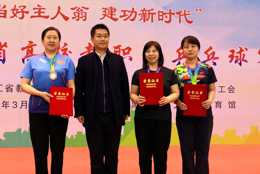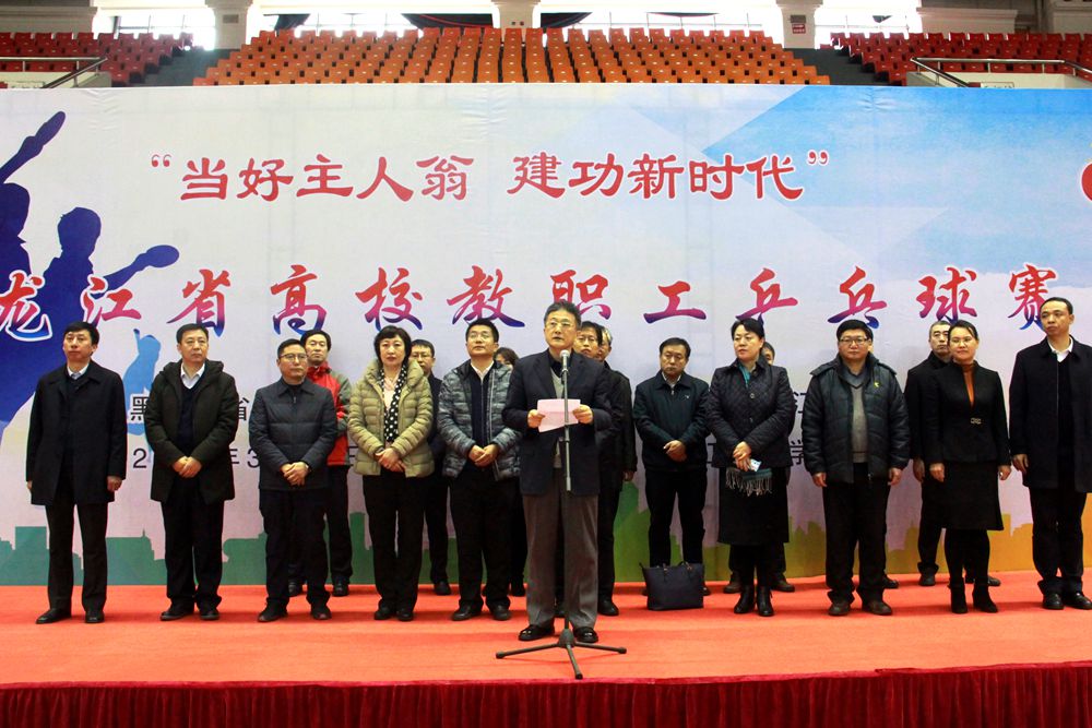 3月15日,“當好主人翁,建功新時代”全省高校教職工乒乓球比賽在我校體育館火熱開賽。本屆比賽由黑龍江省教科文衛體工會主辦,黑龍江大學工會承辦。共有來自本省27所高校及附屬醫院的代表隊200余名隊員參賽。黑龍江省總工會黨組成員、省教科文衛體工會主席于曉東、我校工會主席陳德明以及相關高校及附屬醫院工會主席、工會副主席出席了本場比賽的開幕式。