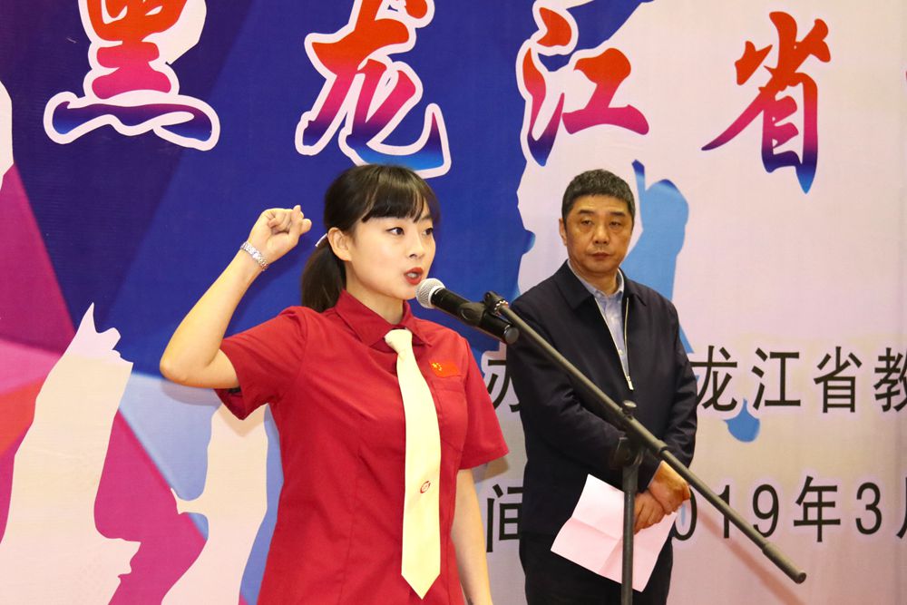 開幕式在旋律振奮的音樂中拉開帷幕,陳德明主席對來自全省的高校代表致以熱烈的歡迎,并表示將以唱響集體主義精神,團隊合作精神,互幫互助精神為宗旨,全力以赴為比賽做好服務保障工作。隨后,我校參賽教師包威代表全體運動員宣誓;哈爾濱商業大學的國家級裁判員程瑞媛代表全體裁判員宣誓。