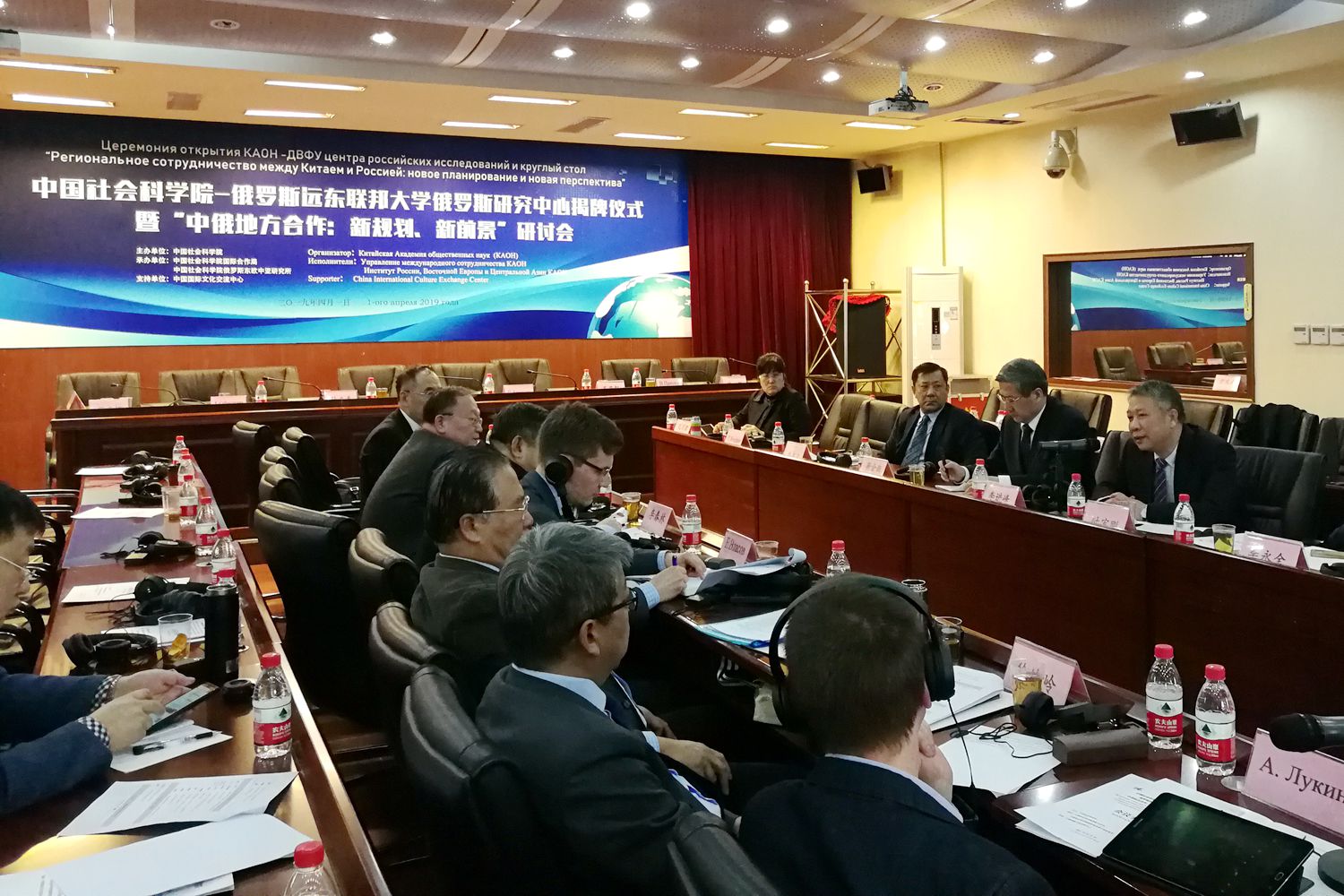 4月1日,中國社會科學院——俄羅斯遠東聯(lián)邦大學俄羅斯研究中心揭牌儀式暨“中俄地方合作:新規(guī)劃、新前景”研討會在北京舉行。來自中俄兩國30余家知名智庫、高校的專家學者和媒體記者近80人參加活動。我校付宏剛校長應中國社科院邀請參加揭牌儀式并參加中俄地方合作研討會。