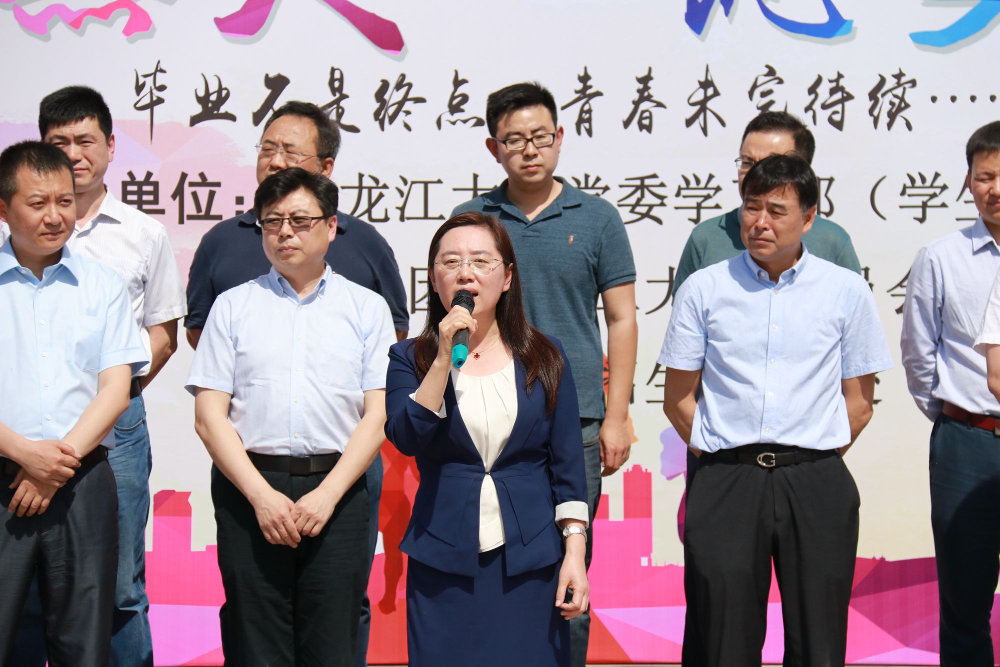 丁宏副書記在活動現場致辭,她代表學校黨委對參加本次活動的領導、老師和畢業生們表示熱烈歡迎,對中國建設銀行哈爾濱香坊支行對活動的大力支持表示衷心感謝。丁宏副書記在致辭中表示,時光如水,歲月如歌,大家的大學生活也即將畫上圓滿的句號,學校各部門、各學院都在竭盡全力推進畢業生離校工作,為大家的順利畢業保駕護航。她希望通過此次校園徒步活動,讓大家重走一次校園路,重新感受校園里的一草一木,重新回憶大學四年里的一點一滴。四年黑大人,一生黑大情,她希望大家畢業后依舊關心母校、心系母校,母校將永遠是大家的精神家園!更希望全體畢業生銘記自己的夢想和責任,牢記黨和祖國的囑托,在今后的工作生活中,秉承“志存高遠、愛國奉獻、艱苦奮斗、自強不息”的黑大精神,樹立遠大理想,熱愛偉大祖國,擔當時代責任,勇于砥礪奮斗,練就過硬本領,錘煉品德修為,腳踏實地走好人生每一步,走向人生美好的未來!最后,丁宏副書記宣布“行健黑大 筑夢遠航”2019年畢業季校園徒步活動正式開始。