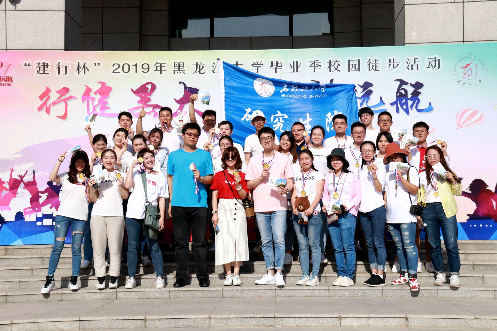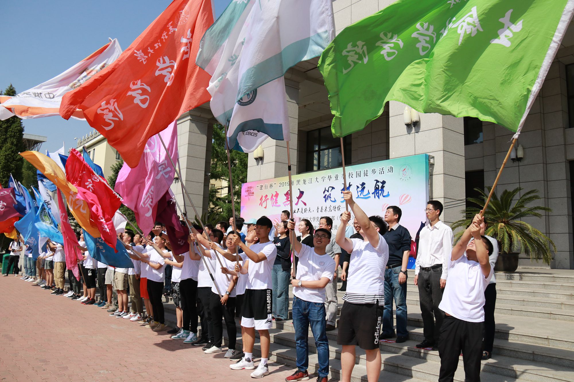 為進一步加強對畢業生的思想教育和價值引領,充分做好2019屆畢業生離校前教育管理工作,著力營造文明、有序、感恩、難忘的畢業離校氛圍,按照《黑龍江大學2019年畢業生離?!笆膫€一”主題教育方案》要求,結合我校“畢業生遠航計劃”教育內容,5月24日下午,我校開展“行健黑大 筑夢遠航”2019年畢業季校園徒步活動。校黨委副書記丁宏,黨委宣傳部、黨委學工部、團委、安全保障部、教務處、招生就業處、體育教學研究部等相關職能部門負責人,各學院主管學生工作領導、畢業年級輔導員、各學院2019屆本科、研究生畢業生代表共1000余人參加活動,中國建設銀行哈爾濱香坊支行行長劉巖應邀出席活動,黨委學工部部長、學生處處長李石主持活動。