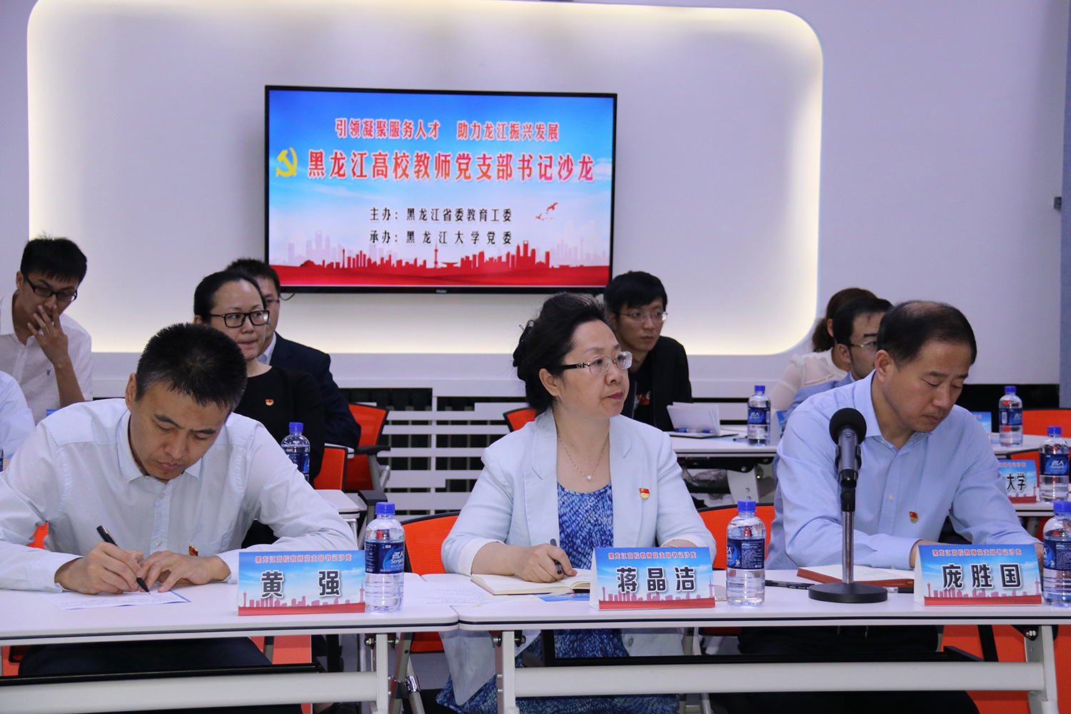 為深入貫徹落實全省高校“弘揚愛國奮斗精神,建功立業新時代”活動推進會精神,落實好解放思想推動高質量發展“百名支部書記談保障”部署安排, 6月3日下午,由省委教育工委主辦、我校黨委承辦的“黑龍江高校教師黨支部書記沙龍”取得了圓滿成功。省委教育工委組織部調研員龐勝國、省委教育工委組織部干部畢軍,我校黨委副書記蔣晶潔、黨委常委、組織部部長黃強,在哈高校組織部主管黨建工作的部長或副部長出席活動,沙龍活動由我校新聞傳播學院黨委書記吳珩主持。