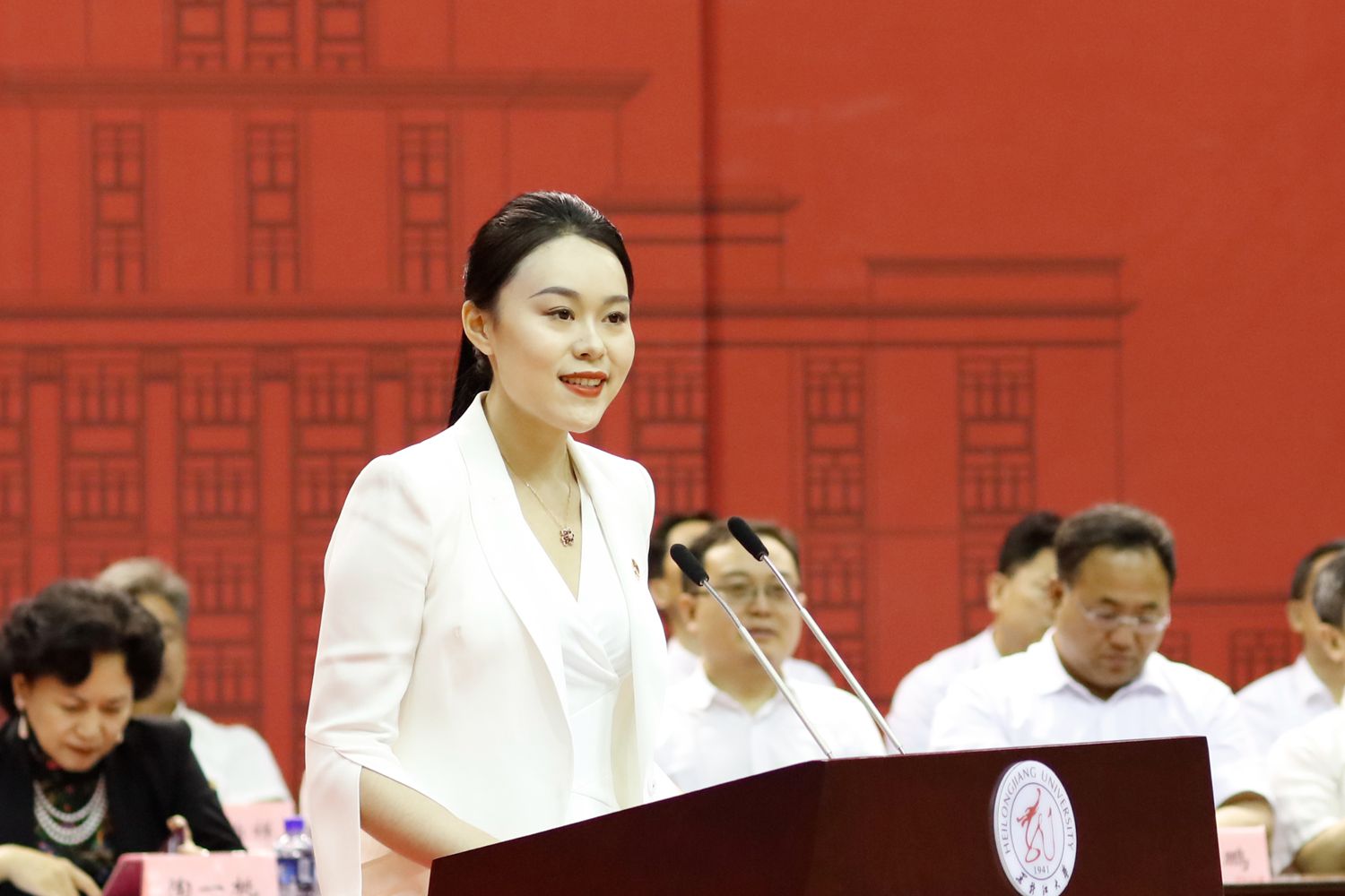 經(jīng)濟與工商管理學院李洋代表2019屆畢業(yè)生向陪伴自己成長的母校和老師們獻上最崇高的敬意。她深情地回顧了在黑大求學的美好時光,這里的每一個角落都見證了大家從求知少年走向有智青年,她表示今后無論在何時何地,都會追夢筑夢,做勇于擔當?shù)暮诖笕恕?/span>