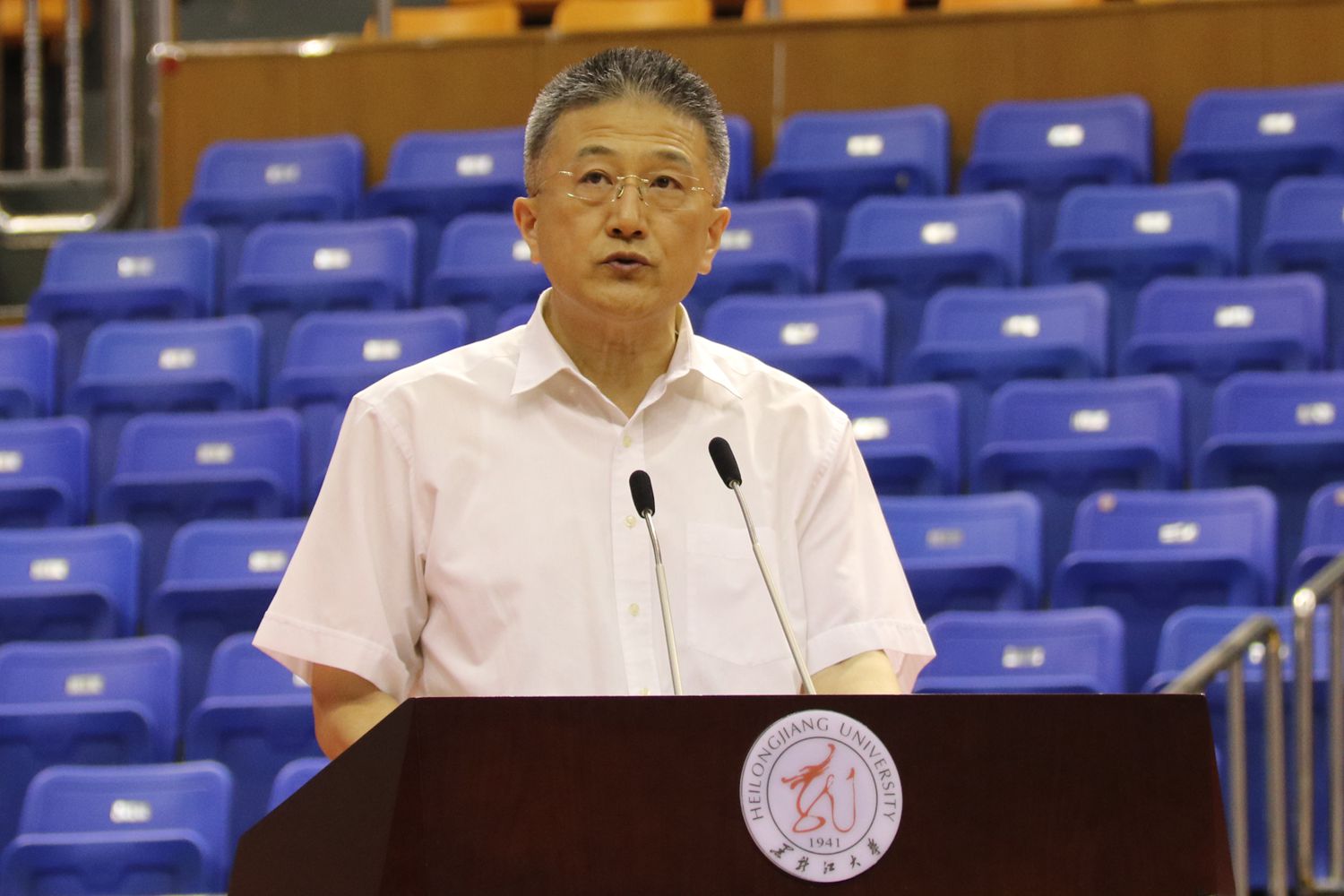 校長付宏剛在典禮上致辭。他代表學校向2019屆畢業(yè)生們致以最熱烈的祝賀、最美好的祝福,向全體教職員工和畢業(yè)生家長們致以崇高的敬意和衷心的感謝。他表示,這幾天,校園里到處洋溢著濃濃的畢業(yè)季氣息,同學們在用自己的方式向大學生活告別。黑龍江大學的校園,記錄了同學們幾年來的歡聲和笑語,記錄了大家的憂愁和遺憾,更記錄了大家的奮進與收獲。幾年里,學校一直努力改善辦學條件,打造更好的育人環(huán)境,嚴抓學風教風,雖然有時未能盡如人意,但學校所做的一切都是希望同學們盡快成長成才,為將來的人生之路奠定更好的基礎。
