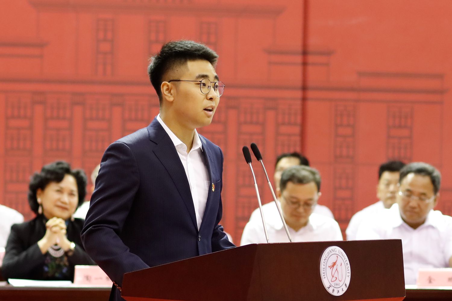 2016級法學院許一博代表全體在校生向即將踏上全新人生旅途的學長學姐們表示熱烈祝賀,他深情地說,你們是黑大的驕傲,是我們的榜樣,衷心祝愿學長學姐們在實現(xiàn)中國夢的道路上乘風破浪、砥礪前行。
