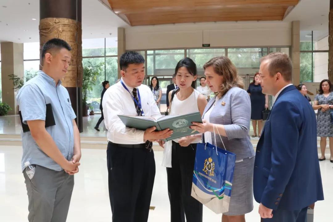 上午,代表團(tuán)一行首先來(lái)到了校史館,了解了我校從1941年的中國(guó)人民抗日軍政大學(xué)第三分校俄文隊(duì)到1958年正式更名為黑龍江大學(xué)的歷史變遷,饒有興致地了解蘇聯(lián)專家來(lái)華授課及我校俄語(yǔ)專家翻譯蘇俄名著的情況。參觀結(jié)束后,代表團(tuán)團(tuán)長(zhǎng)扎維婭洛娃與嚴(yán)明副校長(zhǎng)雙方互贈(zèng)了書籍并合影留念。
