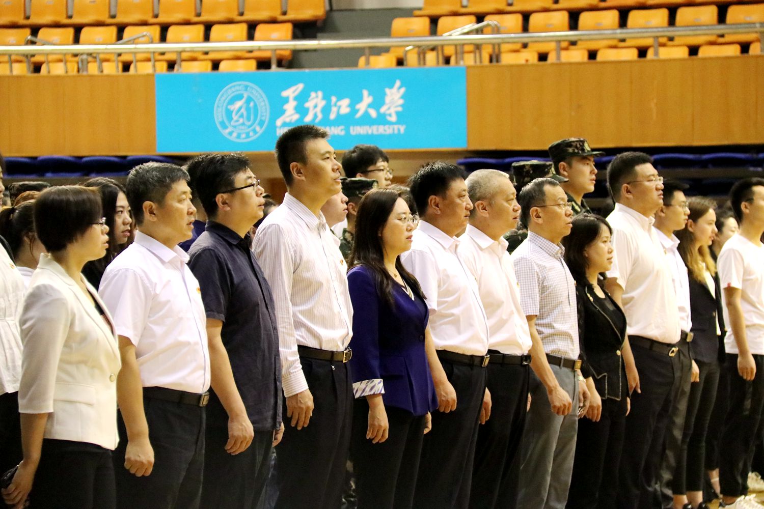 98年,風雨兼程;98年,披荊斬棘。為慶祝中國共產黨成立98周年,7月1日早,我校在體育館舉行升國旗儀式,共同回顧中國共產黨走過的崢嶸歲月,為光榮、偉大的黨送去最真摯的問候和祝福。校黨委副書記丁宏,副校長張穎春,黨委職能部門和各二級黨組織負責人、各學院學生黨員代表、2019年新發展的全體預備黨員參加了升旗儀式。