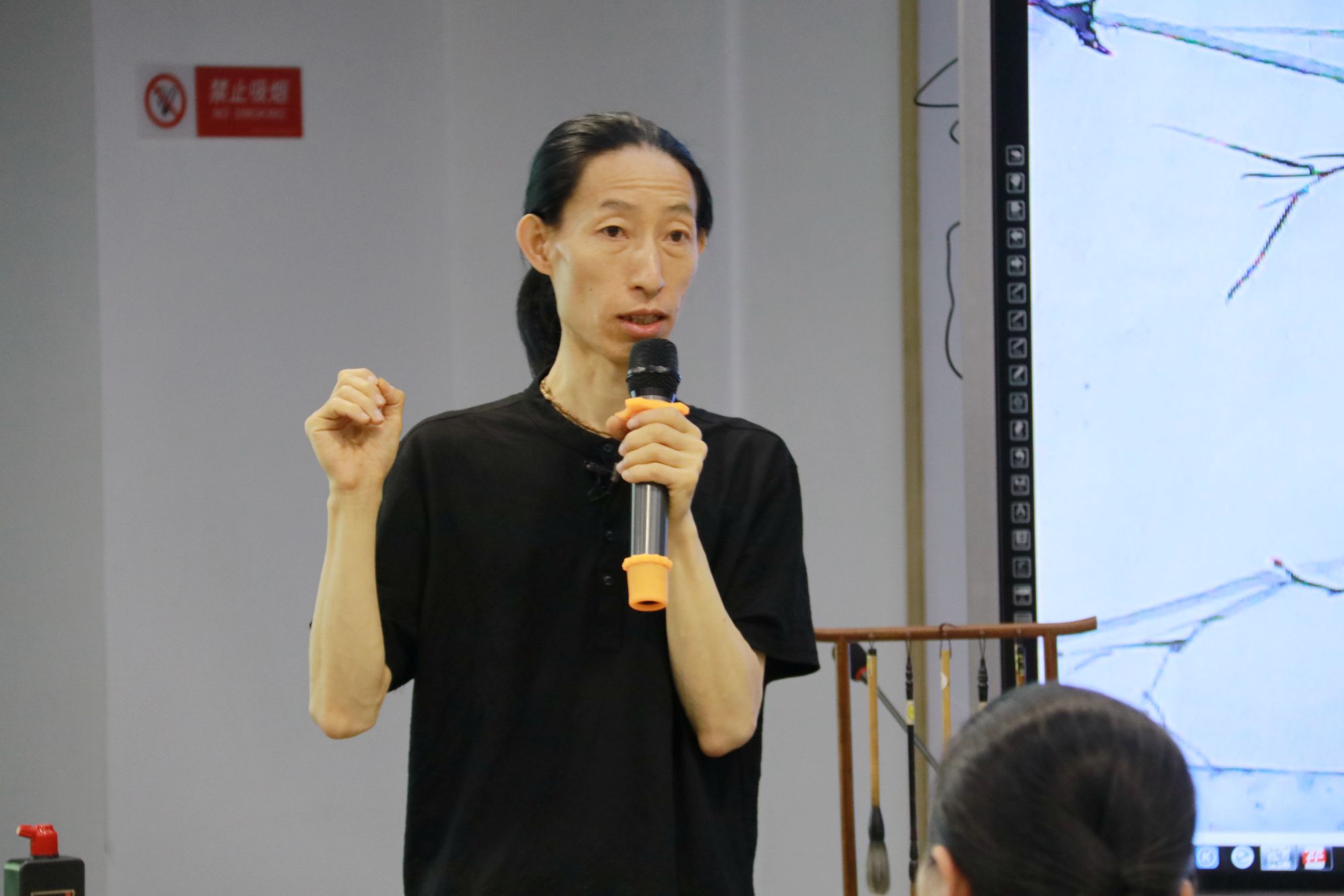 中華優秀傳統文化體驗課堂“中西美術比較視野下的中國畫特點”是由我校藝術學院副教授周光浩老師主講,全部內容大約6講,課程分為理論環節和實踐環節。在第一講中,周老師以中國畫發展過程中的歷史溯源為主線,對中國畫的藝術流派、表現風格、筆墨技法等方面做了簡要介紹,對中西美術的表現形式、風格特點進行對比,就二者在工具使用、色彩表現、創作理念等方面存在的差異進行解讀,重點剖析了國畫中蘊藏的優秀傳統文化元素。在實踐環節,周光浩老師就執筆姿勢、坐姿、用筆方法(中鋒和側鋒)進行培訓,隨后示范了蘭花的葉子和花朵的畫法,并現場指導教師創作蘭花小品,現場教師參與熱情高漲,氣氛熱烈。