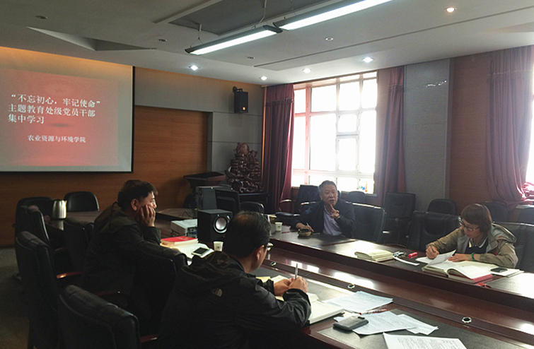 付宏剛校長赴聯(lián)系點現(xiàn)代農(nóng)業(yè)與生態(tài)環(huán)境學(xué)院督查指導(dǎo)“不忘初心、牢記使命”主題教育。他檢查了學(xué)院處級黨員干部“不忘初心、牢記使命”主題教育的近期學(xué)習(xí)情況,翻閱了同志們的學(xué)習(xí)筆記、學(xué)習(xí)材料,充分肯定了同志們能夠靜下心來,原原本本、原汁原味地讀原著、學(xué)原文、悟原理的學(xué)習(xí)態(tài)度,并希望在未來的主題教育中能夠做到多思多想、學(xué)深悟透,融會貫通,真正做到往深里走、往心里走、往實里走。付宏剛校長對學(xué)院“不忘初心、牢記使命”主題教育的開展給予了充分肯定,同時對學(xué)院整合后的學(xué)科發(fā)展及人才隊伍建設(shè)、學(xué)院今后的發(fā)展提出了具體要求。