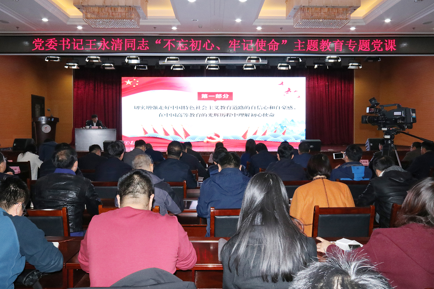 省委第七巡回指導組成員楊力瑕、夏天,校領導、黨員中層干部、全校黨支部書記參加了專題黨課。(攝影:齊浩澤 魏越 溫馨)
