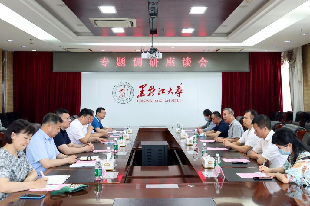 嚴明副校長代表學校對謝迺堂主任一行的到來表示熱烈歡迎,并對我校小語種建設情況作了詳細說明。他表示,黑龍江大學一直高度注重培養復合型人才,全面貫徹外語專業服務國家戰略,以“外語+專業”模式,開設輔修專業、微專業,輔修二學位,政策靈活,可有效提高學生就業能力和競爭力;學校大力支持小語種專業與國外合作辦學并推動跨境電商專業集群建設,目前已取得顯著成效;學校對于企業及地方人才需求進行針對性、訂單式人才培養,促進就業供需對接,并推動與周邊國家交流、互培,著力發揮對俄辦學特色,致力取得新進展。