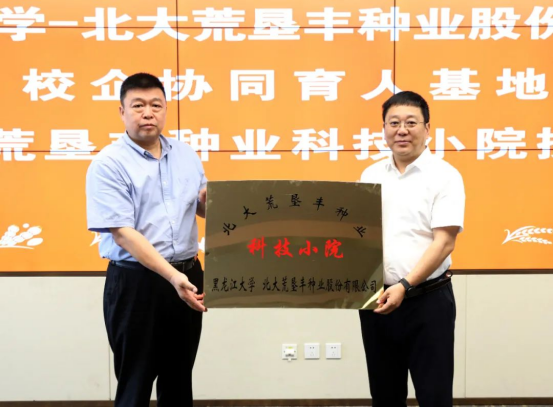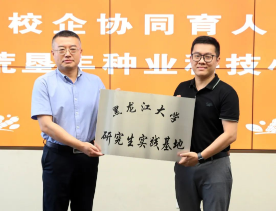 為深化產教融合、校企合作,切實貫徹落實教育部辦公廳、農業農村部辦公廳、中國科協辦公廳《關于推廣科技小院研究生培養模式 助力鄉村人才振興的通知》有關要求,7月13日,副校長嚴明帶隊,教務處、研究生院、現代農業與生態環境學院相關人員實地走訪了北大荒墾豐種業股份有限公司,舉行了“黑龍江大學-北大荒墾豐種業股份有限公司校企協同育人基地暨北大荒墾豐種業科技小院”授牌儀式。墾豐種業黨委副書記、總經理劉輝,黨委委員、人力總監黃威陪同調研。