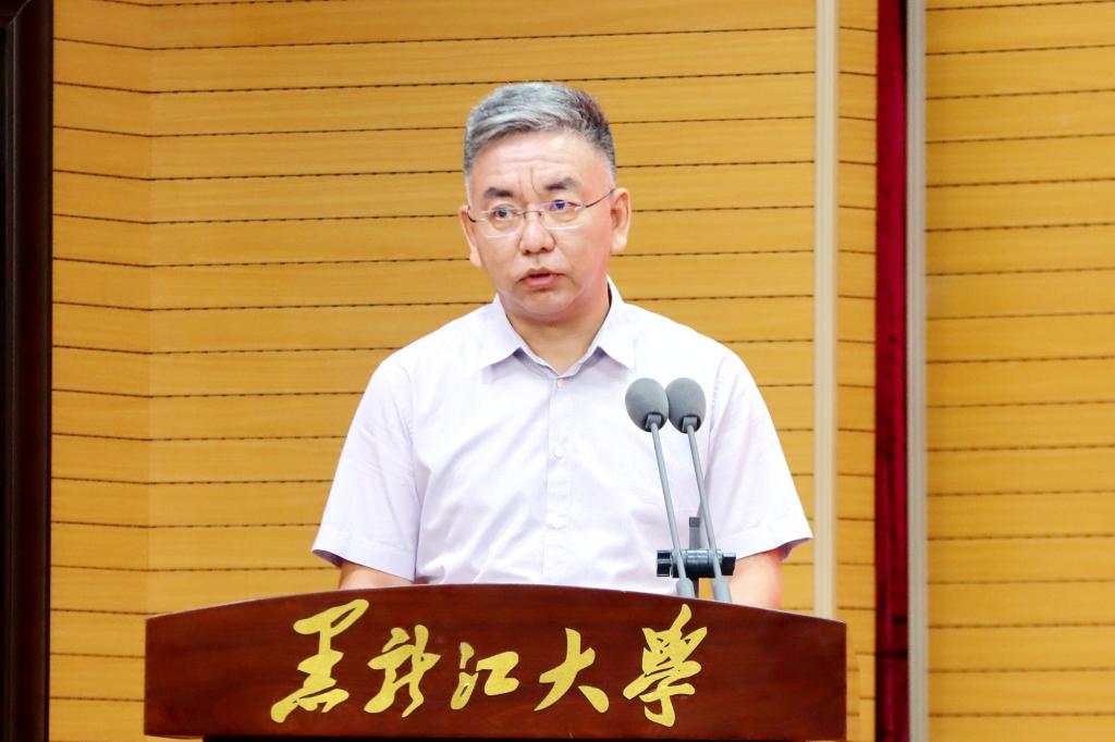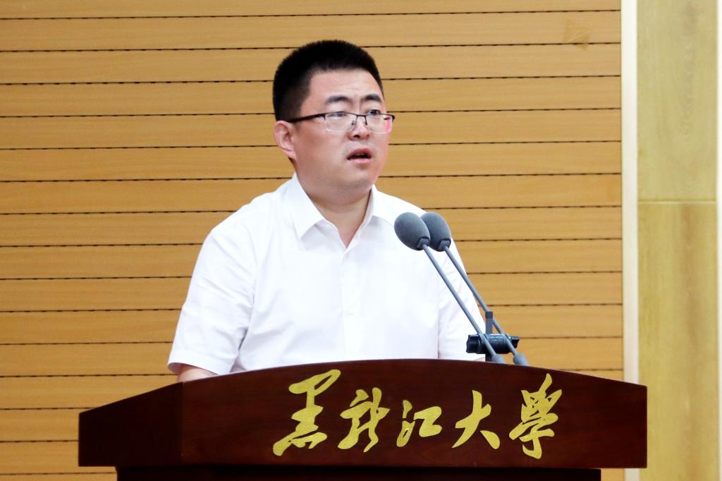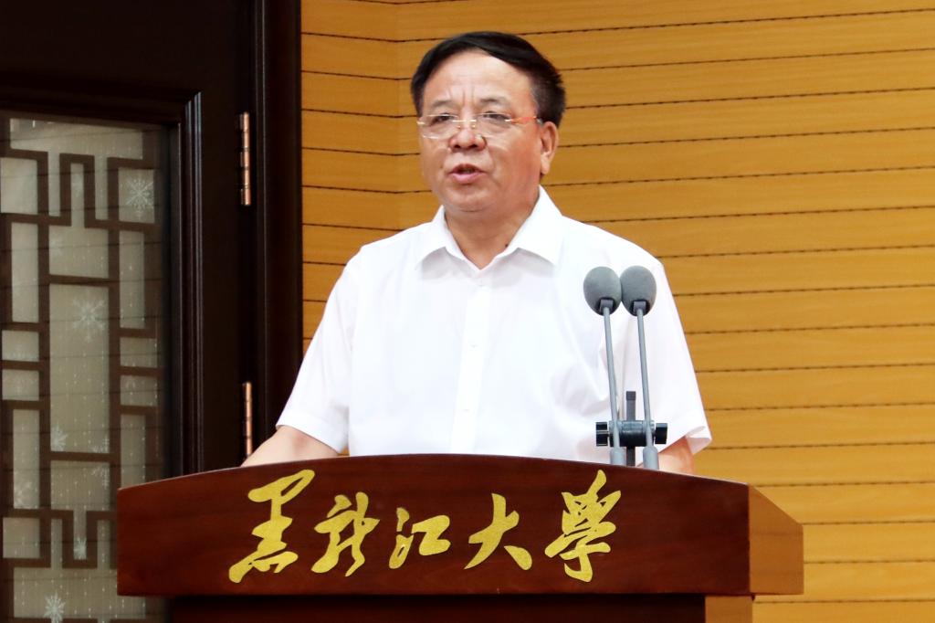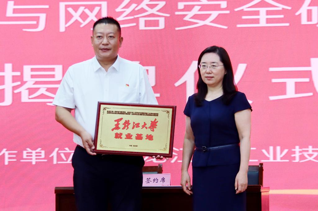 校黨委副書記丁宏向黑龍江航天信息有限公司授牌“黑龍江大學(xué)就業(yè)基地”。
