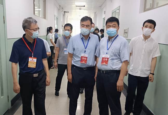 在對面試考場巡視時,張金豐副部長、趙林輝部務委員分別到面試考場、隔離考場及監控室進行了檢查,詳細詢問了面試組織流程、面試抽簽情況、疫情防控措施、后勤保障等工作,對參加本次面試工作的全體工作人員表示親切慰問,對考點各項工作的組織給予了充分肯定。