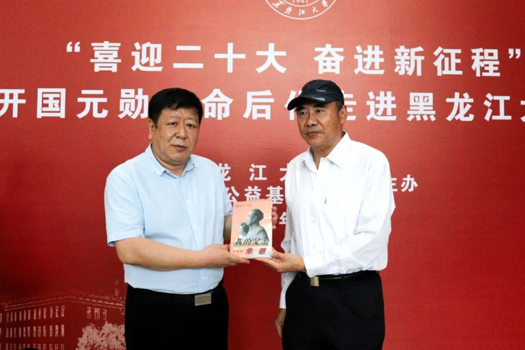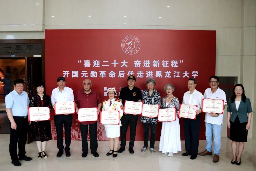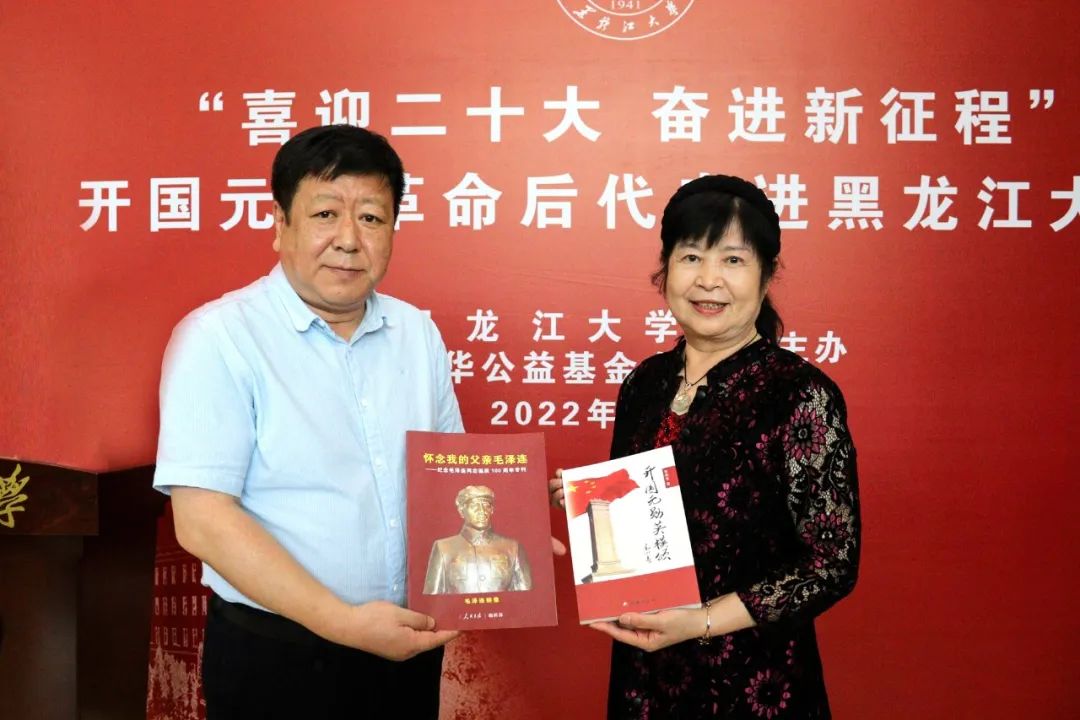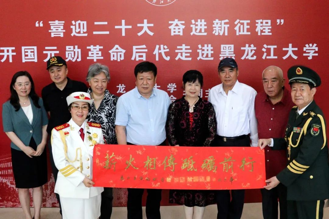 為進一步鞏固黨史學習教育成果,讓紅色基因代代相傳,8月10日下午,毛澤東侄女、中國關心下一代紅偉愛國主義教育基地執行主任毛小青,朱德外孫劉武,王樹聲之女王宇紅,劉亞樓之子、四野后代聯誼會會長劉煜濱,東北抗聯、東北野戰軍后代,景華公益基金會會長張景華等開國元勛革命后代走進黑龍江大學。校黨委書記王永清、黨委副書記丁宏,以及學校辦公室、黨委宣傳部負責人陪同調研。