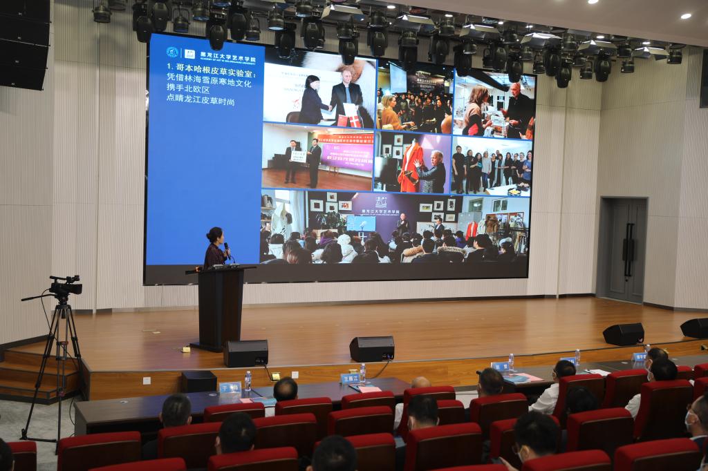 我校黨委常委、副校長李卓帶隊參會并見證簽約,會上藝術學院院長于冠超做了“黑大數字化創意設計中心服裝設計能力”的專題匯報,我校寒地服裝服飾研究中心與KC皮草的校企合作實踐和創意設計轉化作為典型案例在大會上進行分享。