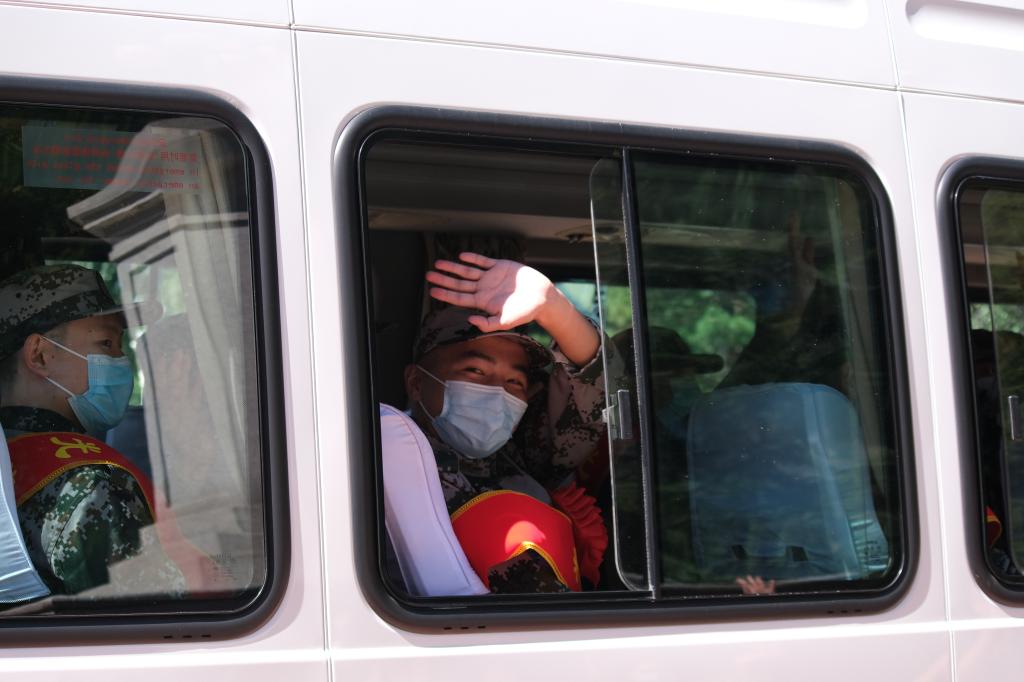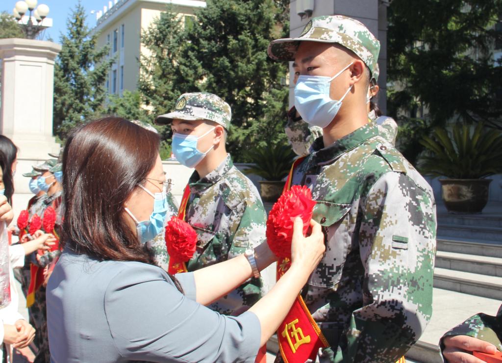 9月1日上午,學校派校車送新兵入營集訓之際,校黨委副書記丁宏等領導、老師到主樓廣場歡送新兵代表離校入營,為新兵代表佩戴“光榮入伍”大紅花、送上校慶紀念徽章,并與全體入伍新兵合影留念。