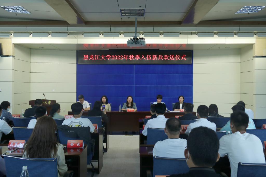 8月31日上午,黑龍江大學2022年秋季入伍新兵歡送會在主樓A座226樓會議室舉行。校黨委副書記丁宏出席會議并講話,學生工作部(學生處、武裝部)、相關學院主管學生工作領導、輔導員、退役大學生士兵代表及全體在校新兵參會,應屆畢業生及因疫情原因未能返校入伍新兵通過線上騰訊會議形式同步參會。會議由學生工作部(學生處、武裝部)部(處)長劉鳳影主持。