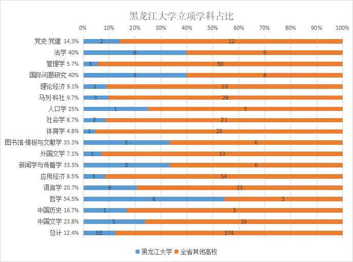 近日,黑龍江省哲學(xué)社會(huì)科學(xué)工作辦公室公布了2022年度黑龍江省哲學(xué)社會(huì)科學(xué)規(guī)劃研究項(xiàng)目立項(xiàng)名單,本年度規(guī)劃項(xiàng)目設(shè)有一般項(xiàng)目、青年項(xiàng)目、智庫(kù)項(xiàng)目、專項(xiàng)項(xiàng)目、扶持共建項(xiàng)目等5個(gè)項(xiàng)目類別。黑龍江大學(xué)獲批立項(xiàng)53項(xiàng),其中,一般項(xiàng)目22項(xiàng)、青年項(xiàng)目14項(xiàng)、智庫(kù)項(xiàng)目5項(xiàng)、扶持共建項(xiàng)目12項(xiàng),立項(xiàng)數(shù)量比去年增加10項(xiàng),立項(xiàng)率比去年增長(zhǎng)7%,立項(xiàng)總數(shù)居全省立項(xiàng)總數(shù)第一位。