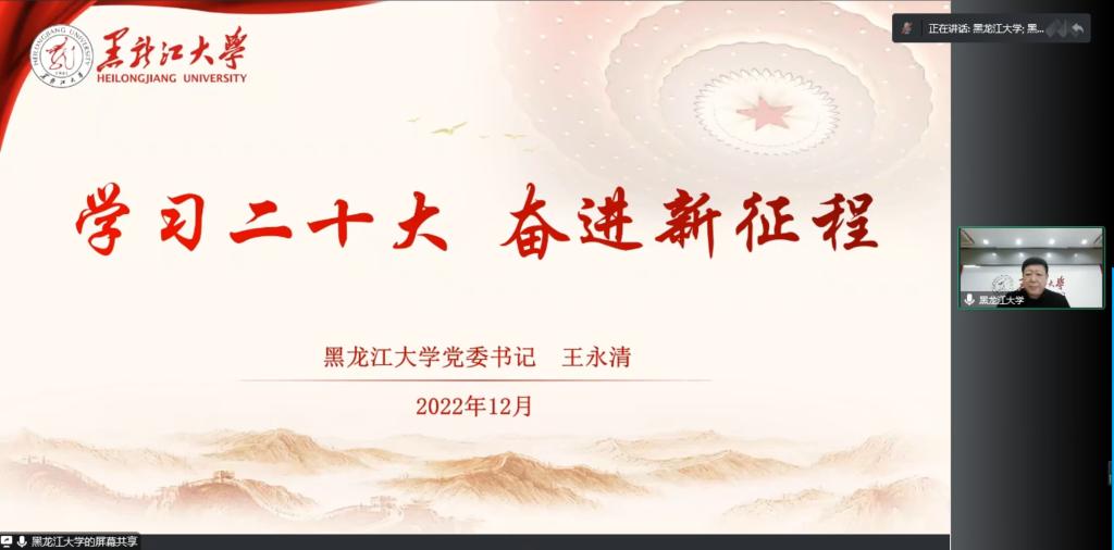 12月1日下午,我校以線上會議的方式召開學習貫徹黨的二十大精神宣講報告會。校黨委書記王永清以“學習二十大 奮進新征程”為主題,為我校領導干部作專題講座。我校全體校領導、全校中層干部、省委及學校黨的二十大精神宣講團成員參加會議。會議由黨委宣傳部部長楊其濱主持。