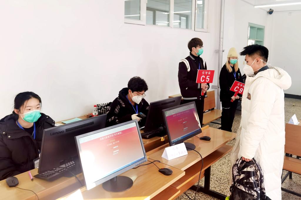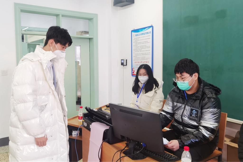 李石一行從入門開始“走流程”,實地查看了備考室、考場、備用考場、考務室、監控室及考場外圍環境,認真聽取了考試情況匯報,對黑龍江大學考務工作給予充分肯定,尤其對考場秩序、安檢、保暖和通行等細致周到的考生綜合服務保障舉措給予高度贊揚。