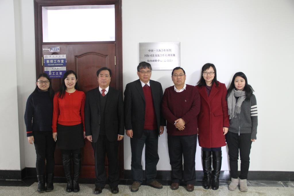 2018年1月5日,中國—上海合作組織國際司法交流合作培訓基地黑龍江大學研修中心揭牌儀式在我校舉行,上海政法學院國際交流處處長、上合培訓基地管委會副主任王蔚教授,上合培訓基地管委會秘書處培訓部副主任印曉慧,副校長董玉庭出席儀式。