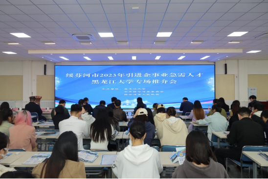 羅海濤圍繞學生關心的工作生活環境、發展空間、人才政策等問題,全方位介紹了綏芬河的歷史文化、自然風光、人文環境、產業發展等方面內容。他表示,綏芬河市委市政府高度重視人才建設,始終堅持把人才作為創新發展的最強驅動。希望通過本次專場招聘活動,進一步深化招才引智、促進市校合作,與廣大畢業生們交流暢談,共同做好走向社會的第一份職業規劃。綏芬河將以優質的崗位、優厚的待遇、優越的環境為黑大學子提供揮灑青春、施展抱負的廣闊舞臺,努力讓綏芬河成為學子們夢想的起航地、事業的發展地、人生的幸福地。