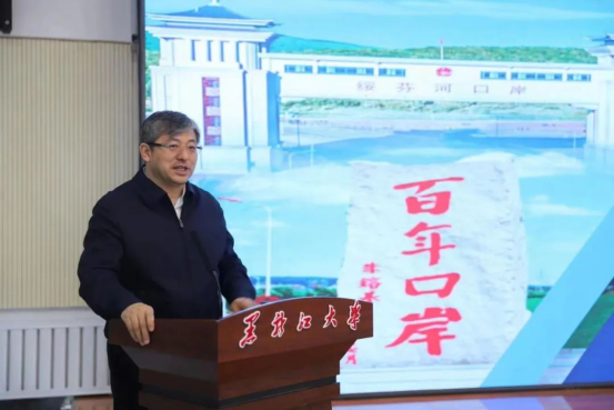 丁宏在活動中致辭,對綏芬河市各位領導的到來表示熱烈歡迎。她表示,本次宣講活動既是綏芬河市深入推進政校合作,促進教育服務龍江,全面振興,全方位運行邁出的重要一步;也是我校發揮辦學優勢、提高社會服務水平、在龍江發展中發揮更大作用的又一次新機遇;更是對雙方合作的有力擴展和深化。丁宏希望雙方能夠繼續加強溝通交流,拓寬合作覆蓋面,緊密對接綏芬河市發展重大需求,充分發揮史料資源的優勢和學科科研資源的平臺優勢,產出標志性理論研究成果,不斷探索交流合作新模式,開辟出一條政、校、企合作新路,在雙方坦誠交流和精誠合作下,推動龍江全面發展全方位振興。