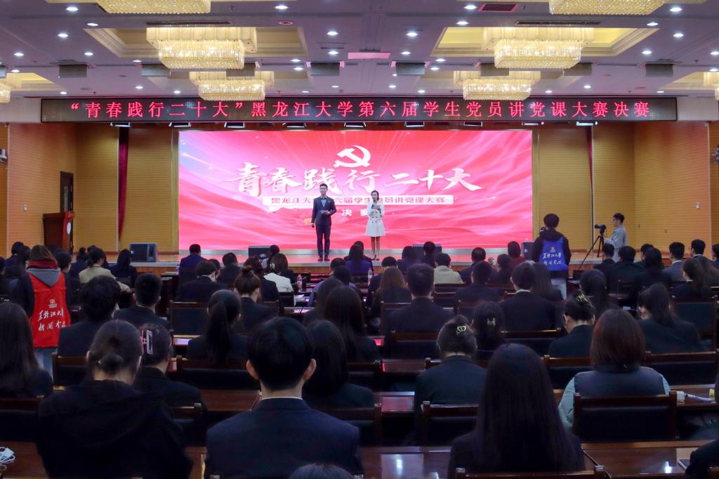 為深入學習貫徹黨的二十大精神,全面提高學生黨員教育培養質量,引導廣大學生黨員堅定不移聽黨話、跟黨走,4月12日下午,“青春踐行二十大”黑龍江大學第六屆學生黨員講黨課大賽決賽在學校主樓一樓報告廳舉行。校黨委副書記丁宏出席活動。校黨委宣傳部部長楊其濱、黨委組織部正處級組織員趙麗輝、學生工作部部長劉鳳影、校團委書記張丹、馬克思主義學院院長王秋擔任比賽評委。各學院主管學生工作領導、團委書記、學生黨員代表到場觀看比賽。