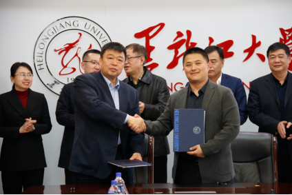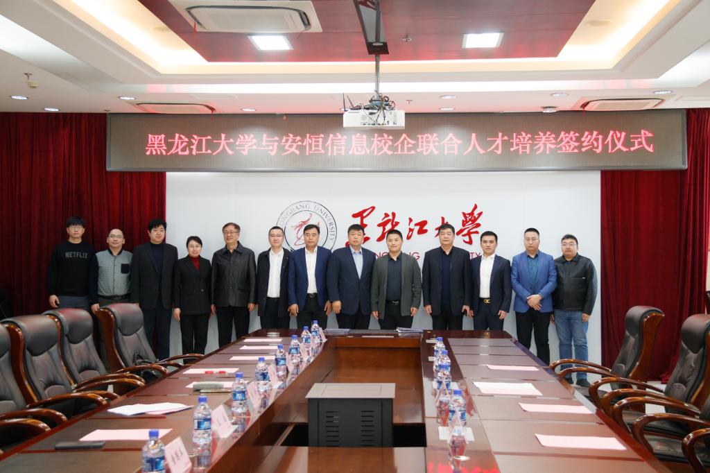 4月24日下午,我校與杭州安恒信息技術(shù)股份有限公司在主樓8樓會議室舉行校企聯(lián)合人才培養(yǎng)協(xié)議簽約儀式。杭州安恒信息技術(shù)股份有限公司數(shù)字人才創(chuàng)研院副院長吳鳴旦,黑龍江辦事處主任朱成林、副主任王海波、技術(shù)經(jīng)理劉強,我校副校長嚴明,教務(wù)處、研究生院、數(shù)據(jù)科學(xué)與技術(shù)學(xué)院主要負責人等出席簽約儀式。數(shù)據(jù)科學(xué)與技術(shù)學(xué)院院長王磊主持簽約儀式。