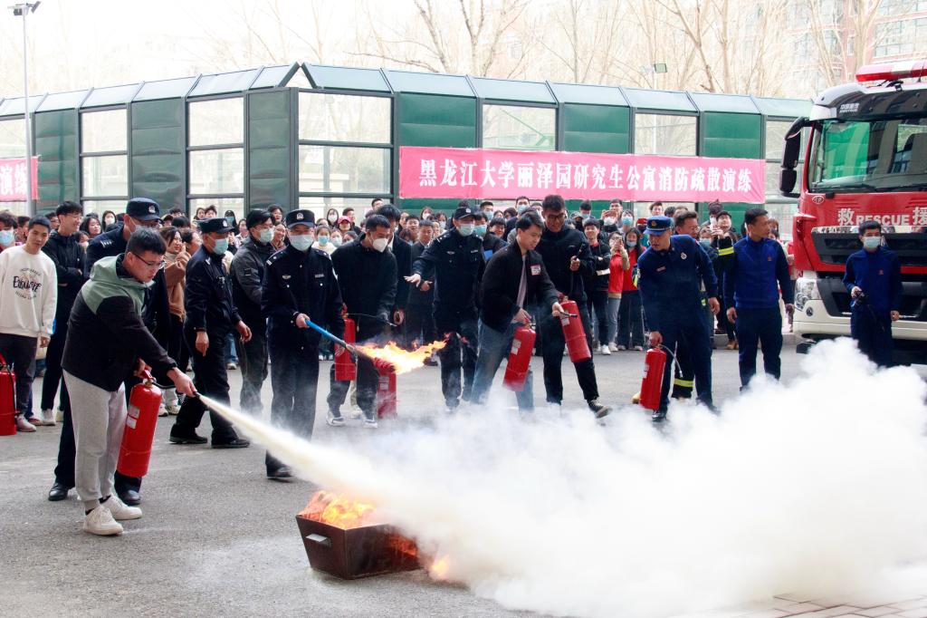 為維護學校安全穩定,主動防范化解火災風險隱患,全面提升消防安全素質和抵御災害的能力,4月27日下午,我校聯合南崗消防救援大隊在麗澤園研究生公寓舉行消防疏散滅火演練活動。校黨委副書記丁宏,副校長李卓,南崗消防救援大隊領導及官兵,安全保障部、學工部、研究生院、實驗室建設與設備管理處、后勤管理處、校區管理處相關負責人以及師生參加演練。