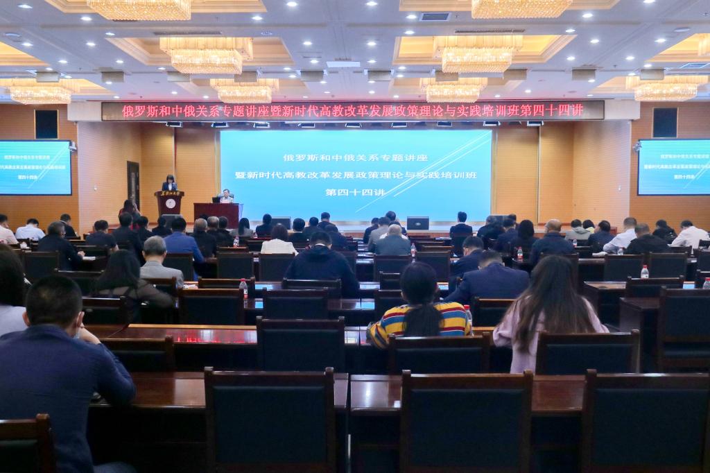5月31日上午,我校在主樓一樓報告廳舉辦俄羅斯和中俄關系專題講座暨新時代高教改革發展政策理論與實踐培訓班第四十四講。學校邀請了國家首批高端智庫中國現代國際關系研究院研究員季志業擔任本次報告的主講人。校領導王永清、李君明、梁東輝、張穎春、于文秀、鐘衛東、井立強,全校正處級干部、俄羅斯語言文學與文化研究中心全體成員等參加了報告會。報告會由副校長于文秀主持。