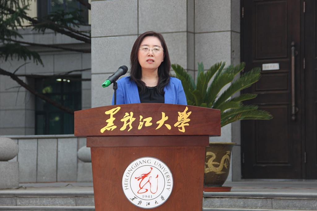 丁宏在活動上講話。她指出,今年畢業季期間,學校各部門、各學院竭盡全力推進畢業生離校工作,專門制定了《黑龍江大學2023屆畢業生離校工作方案》和《黑龍江大學2023年畢業生離校“十五個一”主題教育活動方案》,本次校園徒步活動是畢業離校教育的重要內容,也是學校舉辦多年的品牌活動、特色活動,她希望廣大畢業生通過此次活動重新感受校園里的一草一木、一人一物,帶著黑大人的情懷,帶著母校的殷殷囑托,奔赴人生新的方向,實現新的夢想。她表示,學校將繼續堅持“以學生為本”的學生工作理念,圍繞推動學生工作高質量發展,圍繞服務學生成長成才,創新思想政治教育內容和形式,啟動實施“時代新人鑄魂工程”,進一步激發同學們的愛黨、愛國、愛校情懷,為同學們實現德智體美勞全面發展、全方位成長成才保駕護航。
