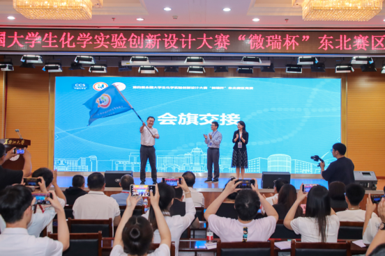 東北競(jìng)賽委員會(huì)郭玉鵬主任代表東北賽區(qū)致辭,他指出作為本次大賽的承辦方黑龍江大學(xué)高度重視本次大賽,全方面統(tǒng)籌、全力保障賽事的順利舉辦。本次參賽團(tuán)隊(duì)作品緊跟時(shí)代步伐、緊密聯(lián)系國(guó)家發(fā)展、緊扣創(chuàng)新創(chuàng)造,希望東北賽區(qū)的同學(xué)們能夠?qū)⒆髌仿涞厣趪?guó)賽中再創(chuàng)佳績(jī)。他宣布2025年第五屆全國(guó)大學(xué)生化學(xué)實(shí)驗(yàn)創(chuàng)新設(shè)計(jì)大賽東北賽區(qū)競(jìng)賽活動(dòng)將由內(nèi)蒙古民族大學(xué)承辦。閉幕式上進(jìn)行了會(huì)旗交接儀式,下屆承辦方代表內(nèi)蒙古民族大學(xué)化學(xué)與材料學(xué)院院長(zhǎng)劉景海教授進(jìn)行發(fā)言。